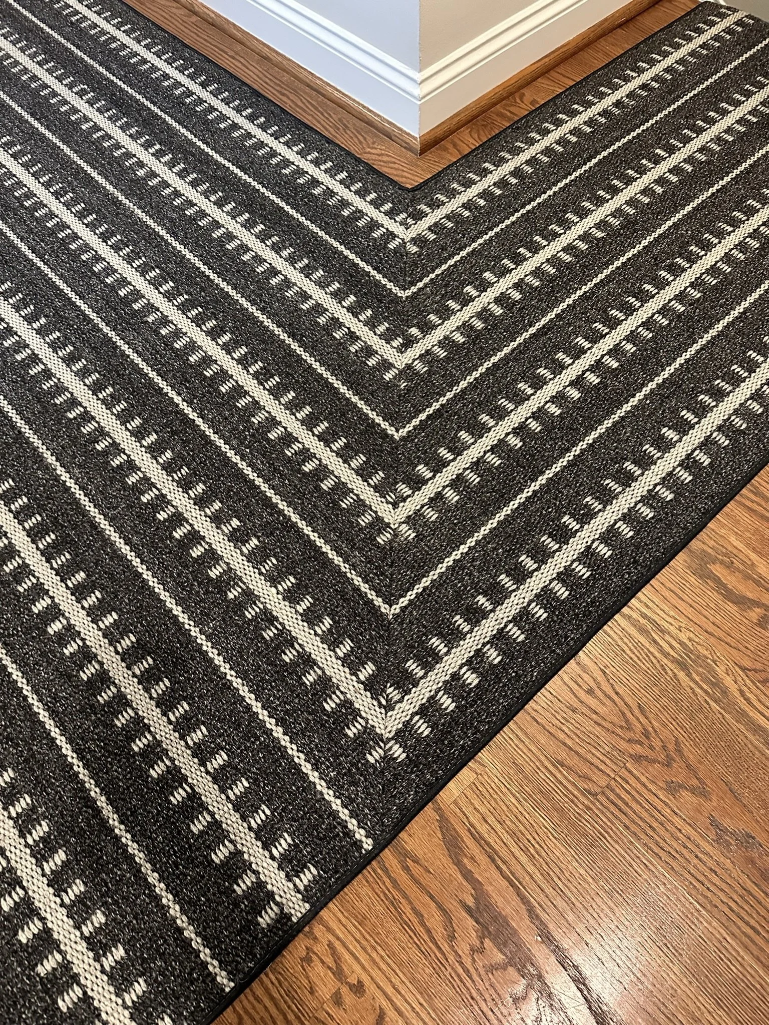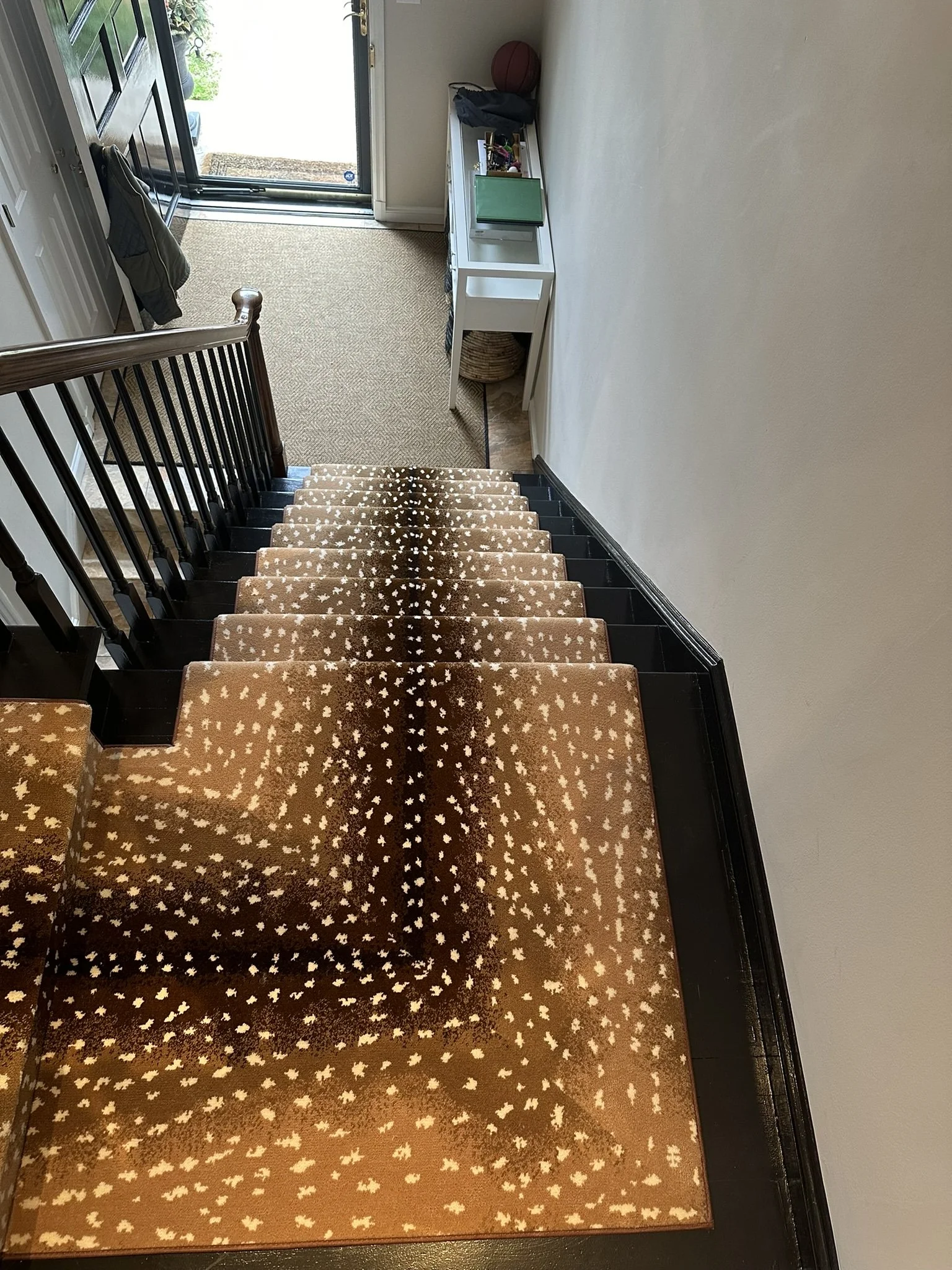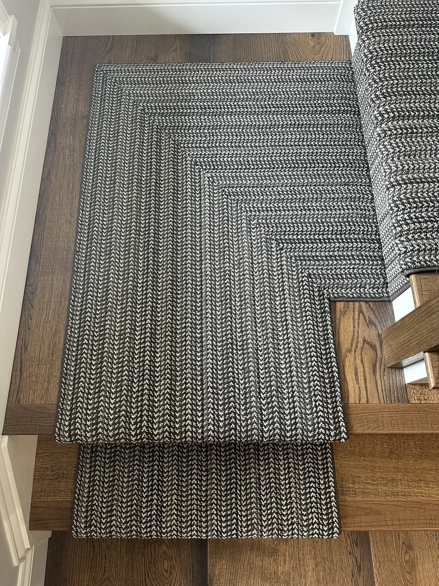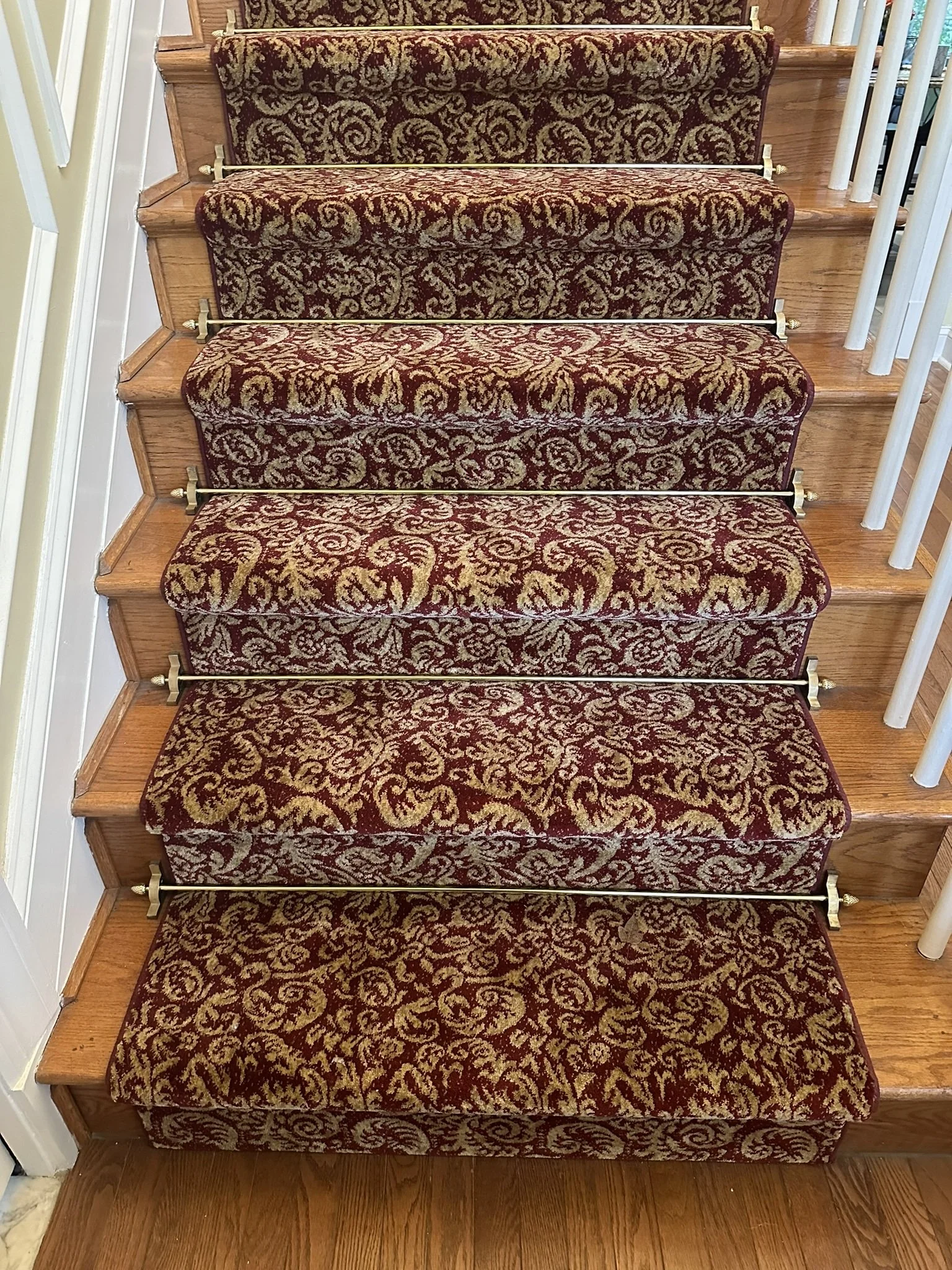 In this section, you will find a variety of specialty jobs. Hand-sewn mitered landings, hand-sewn seams in woven carpet, beauty studs, and stair rods are just a few examples of specialy work.