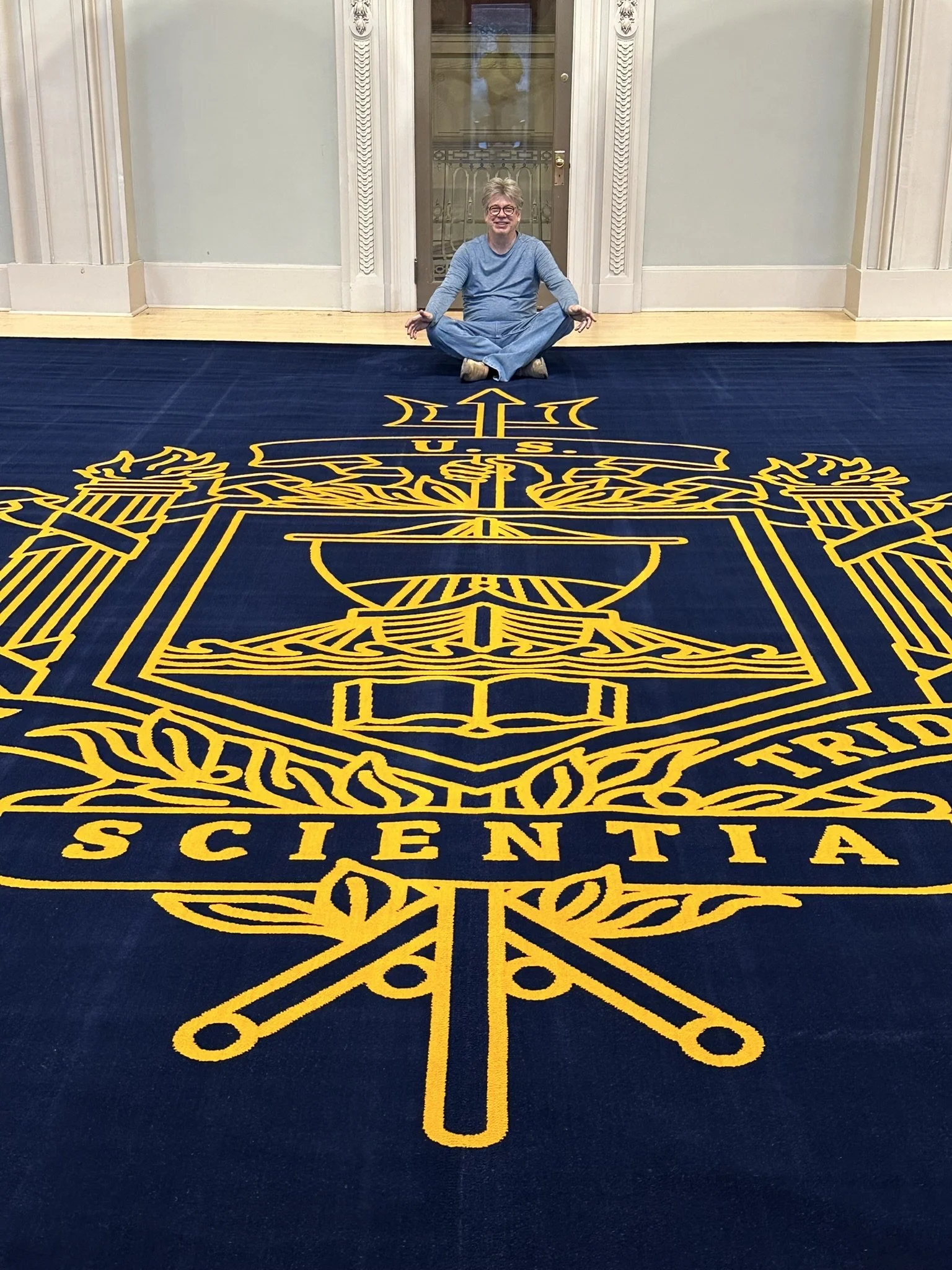 Completed, hand-sewn area rug at the United States Naval Academy..