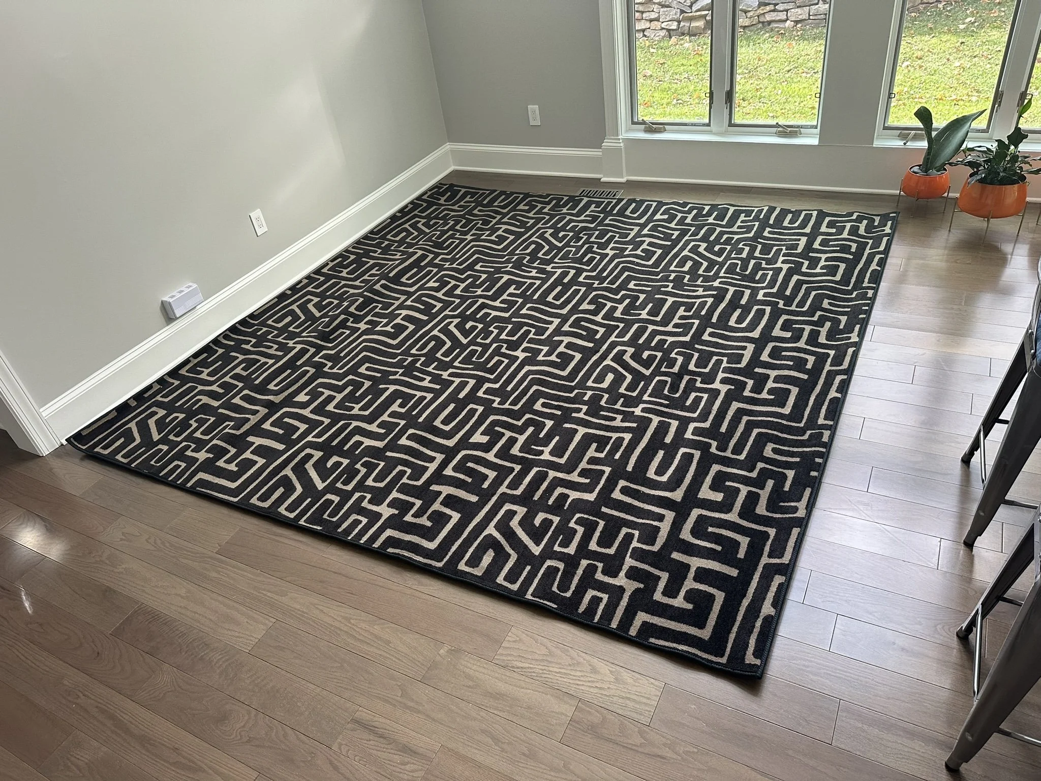 A large room where the rug was fabricated and bound on site. It is laying loose in the room
