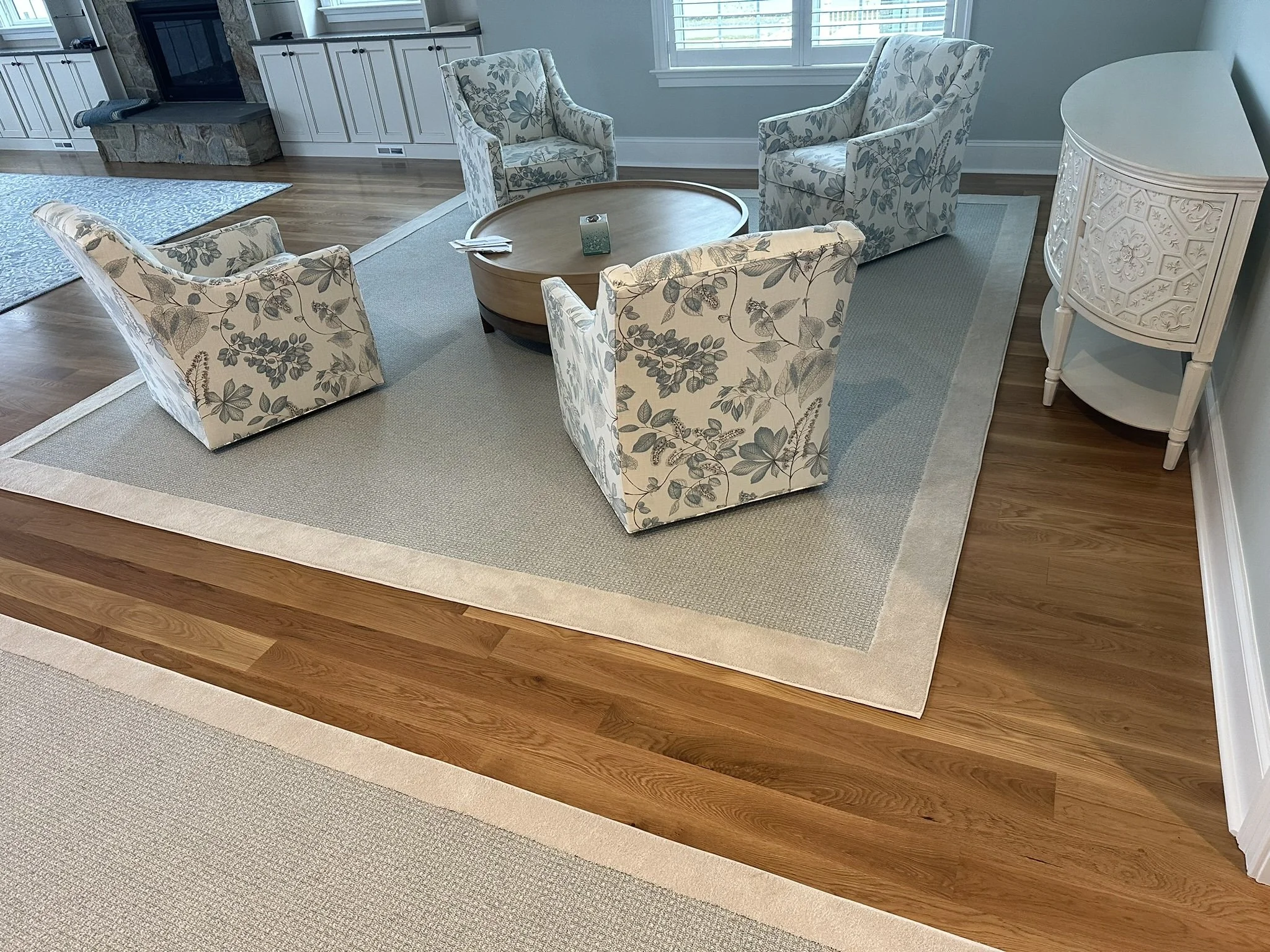 In this section, you will find a variety of area rugs. Each rug is unique to the space it is in. Adjustments like the amount of wood that is revealed, the type of binding used, and other elements like carpet borders can tie the colors of a room together.